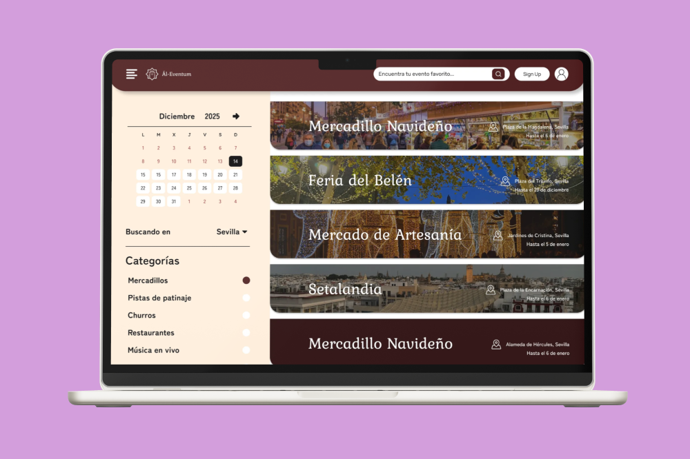 Ál_eventum nació con la idea de reunir en un solo lugar toda la magia de la Navidad en Sevilla. Nos dimos cuenta de que, durante estas fechas, la ciudad se llena de actividades, mercados y eventos, pero muchas veces la información está dispersa y es difícil enterarse de todo.